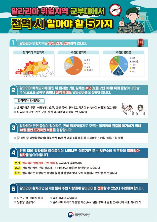 말라리아 위험지역 방문 및 군부대 전역 시 알아야 할 5가지