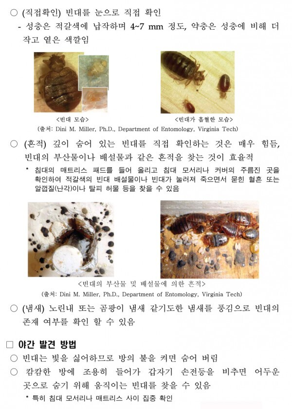 3. 직접 눈으로 확인하거나 빈대의 부산물이나 배설물과 같은 흔적 확인