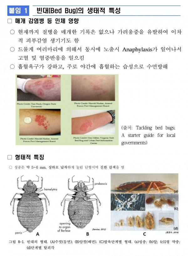 • 주로 침대 등에 서식하며 야간에 수면 중인 사람을 흡혈