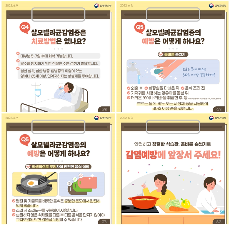 - 살모넬라균감염증 환자를 통한 분변-구강 경로로 감염될 수 있습니다.