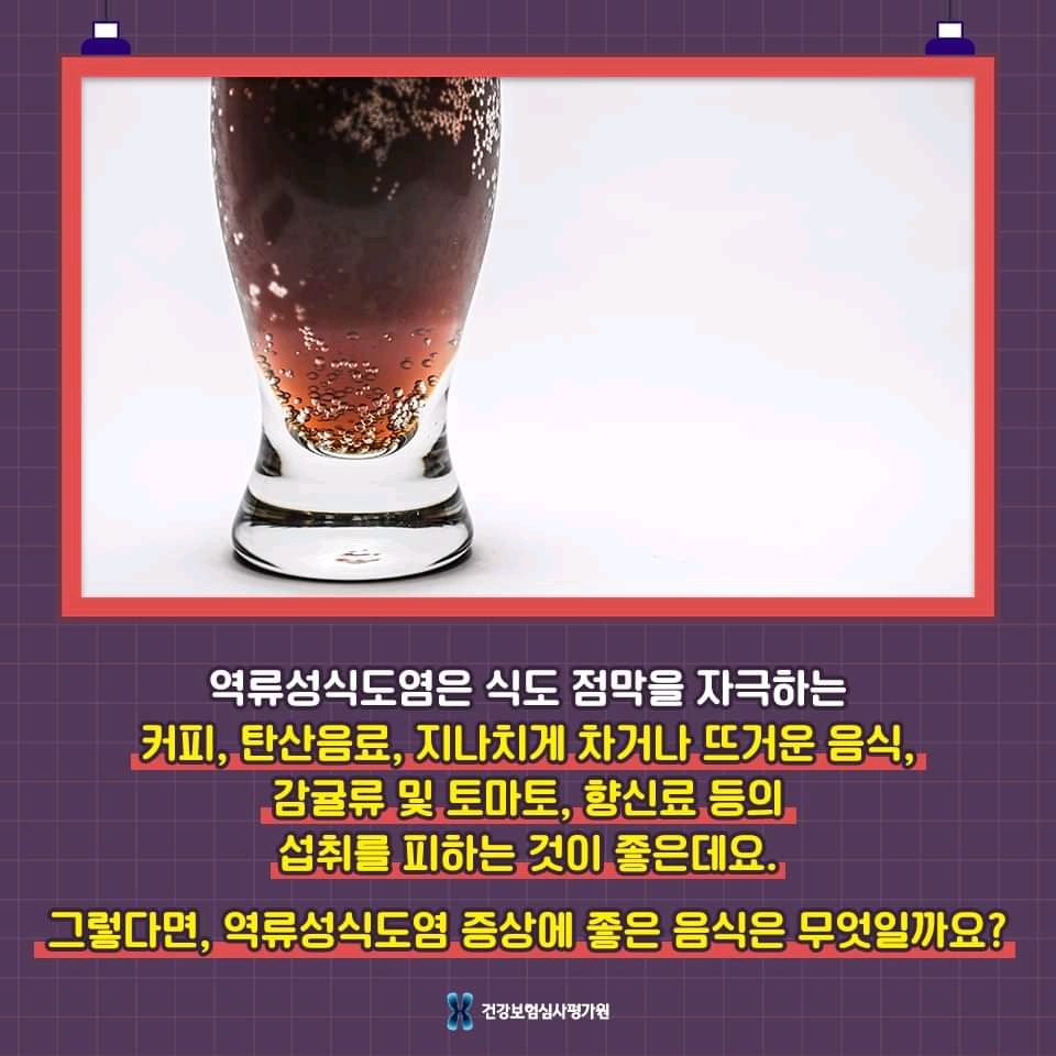 #역류성식도염 #커피 #탄산음료 #찬음식 #뜨거운음식 #감귤류 #토마토 #향신료 #양배추 #카모마일 #마