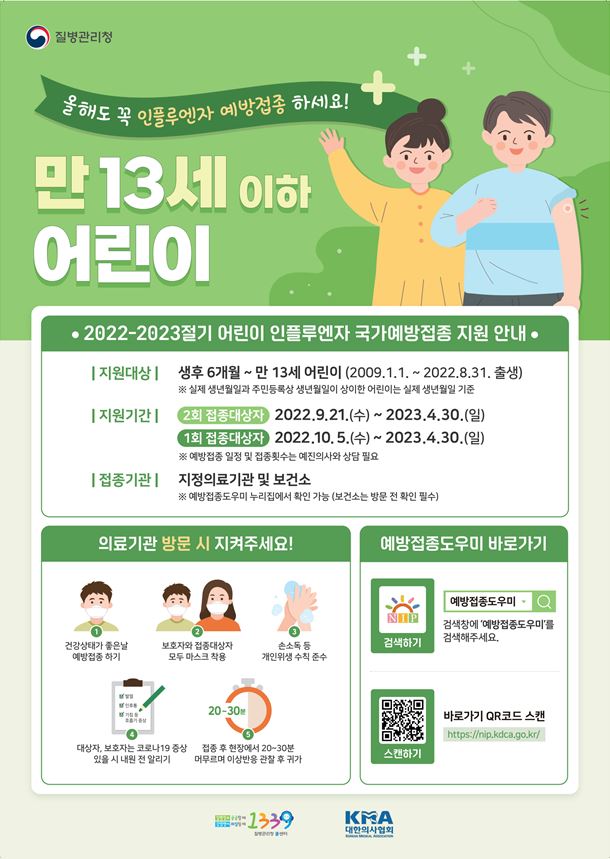 2022~2023절기 어린이 인플루엔자 국가예방접종 지원 안내